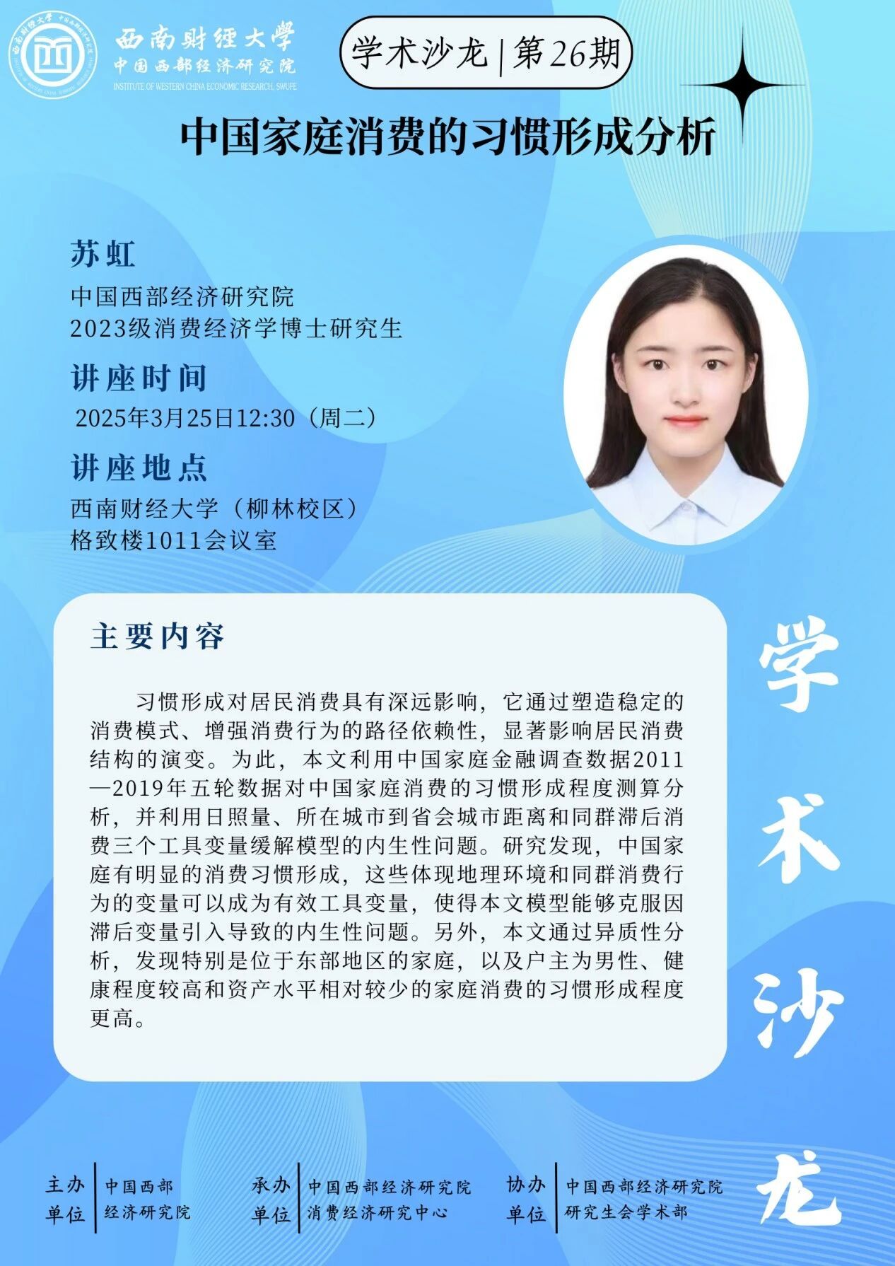 苏虹 中国西部经济研究院 2023级消费经济学博士研究生