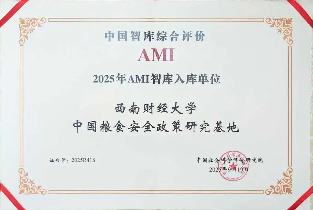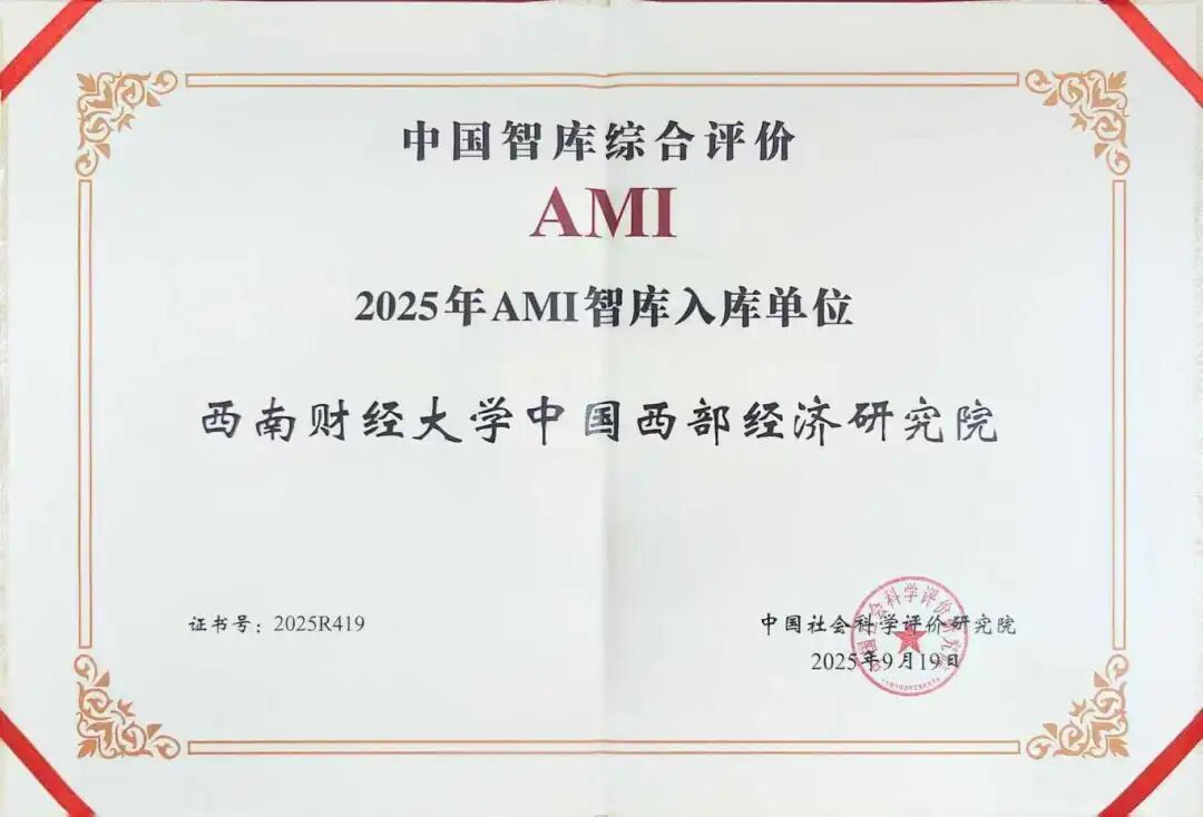 近日,中国社会科学评价研究院主办的第八届中国智库建设与评价高峰论坛在北京召开,论坛正式公布了“中国智库综合评价研究项目(2025)”评审结果,我院共有2家智库成功入选,具体为:西南财经大学中国西部经济研究院、西南财经大学中国粮食安全政策研究基地。