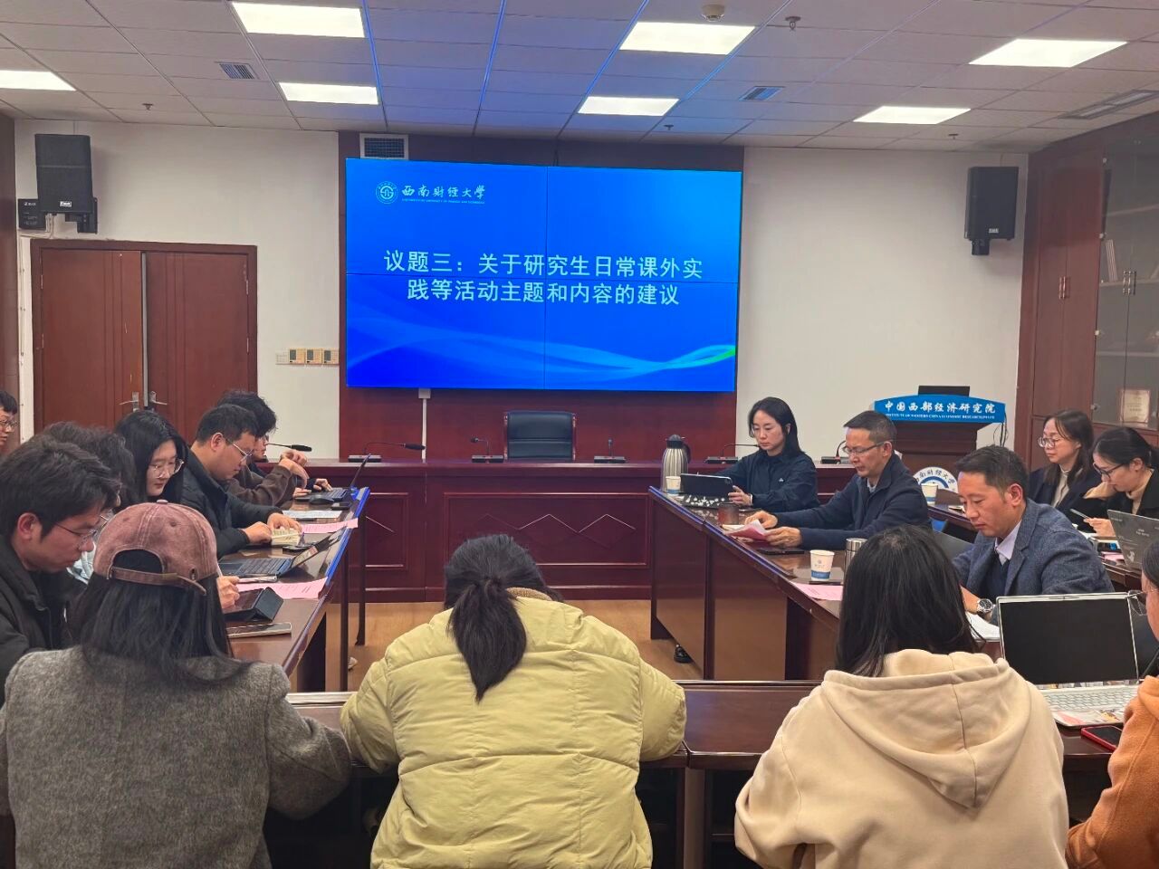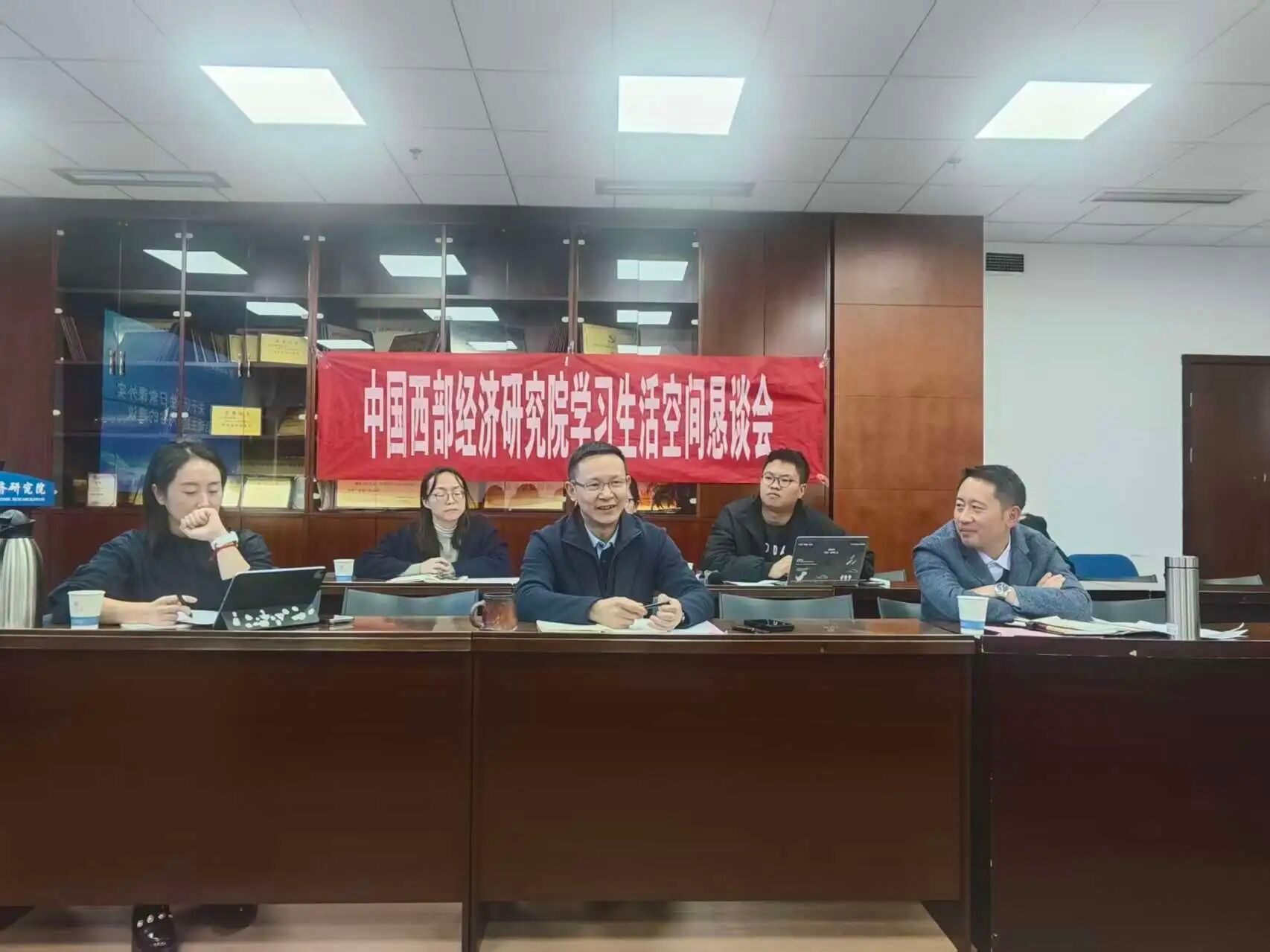 11月21日下午,中国西部经济研究院在格致楼1011会议室召开学习与生活空间恳谈会,研究院党委书记冯卫东,副院长吕朝凤,党委副书记、纪委书记史雪聃及辅导员肖霄、徐跃辉,教学秘书罗侃、方彬等教师代表出席本次会议。全院各硕博班级学生代表参加座谈交流,研究生会王佳馨同学主持会议。